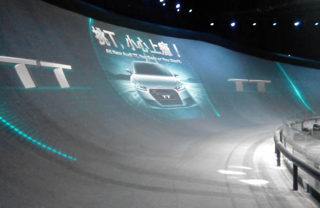 This idea of seeing cars in action was adopted by Volkswagen, who, in 2015 worked with Flowcrete China to create a bespoke indoor racetrack for the launch of the brand new Audi TT. This track had to be able to withstand several Audi’s traveling at 60km/h and also play host to a complex light display, videos and graphics that were projected onto the track itself during the show.